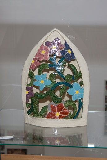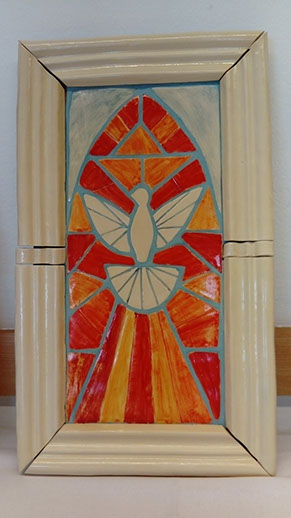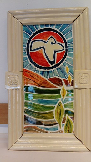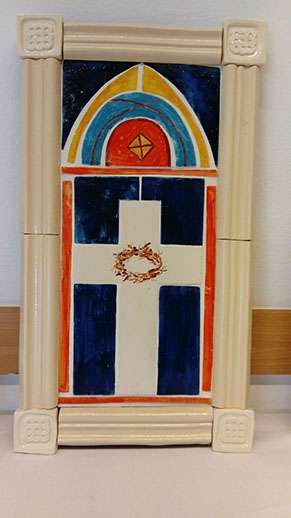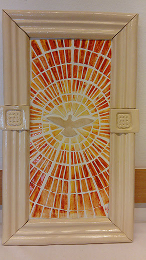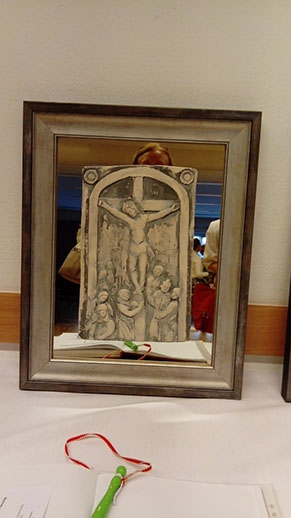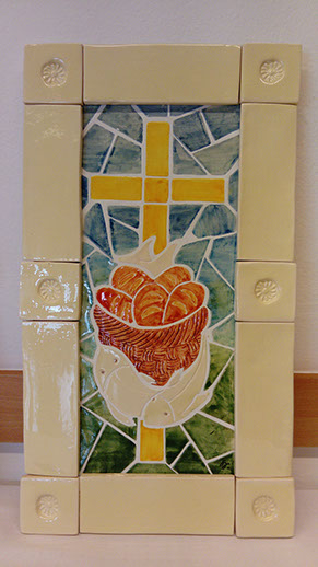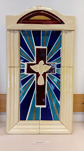 Mi a kiírás első részére pályáztunk kerámia mozaik képekkel, kerámia fali plasztikákkal, rézdomborításokkal, összesen 10 alkotó, 18 db alkotással, "Gondolatok az 52. Nemzetközi Eucharisztikus Kongresszushoz" fantázia-címmel.