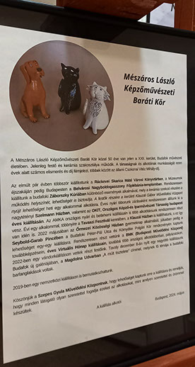 A Mészáros László Képzőművészeti Baráti Kör idén is megtartotta szokásos augusztus eleji két hetes nyári alkotó táborát a nagytétényi Szellmann Házban, László Éva elnök asszony nagylelkűségének köszönhetően. A tábor záró napján, augusztus 11-én az elkészült alkotásokból kiállítás nyílt, mely - a kerámiák kivételével - egy hónapig tekinthető meg.